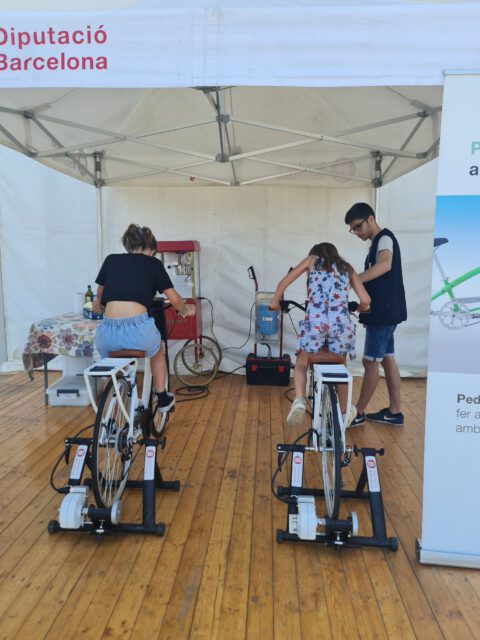 Apropeu-vos i descobriu el potencial de les energies renovables, comprovareu com podem arribar a fer crispetes utilitzant l’energia generada tot pedalant amb les bicicletes.